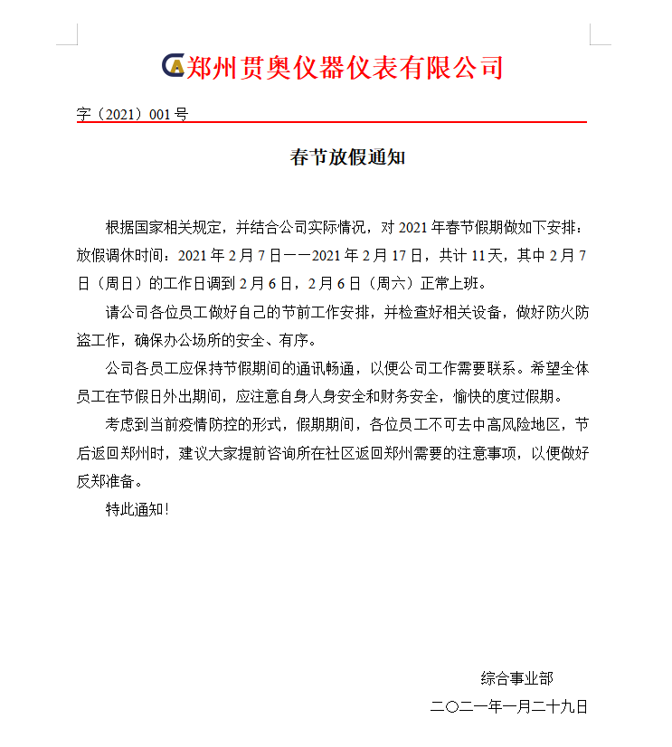 舊歲已展千重錦,新年再進百尺竿。成績都是奮斗出來的!希望在2021年貫奧的各位家人能夠同心協(xié)力、共創(chuàng)佳績。同時根據(jù)國家的相關(guān)規(guī)定對于2021年春節(jié)放假做出以下安排:
